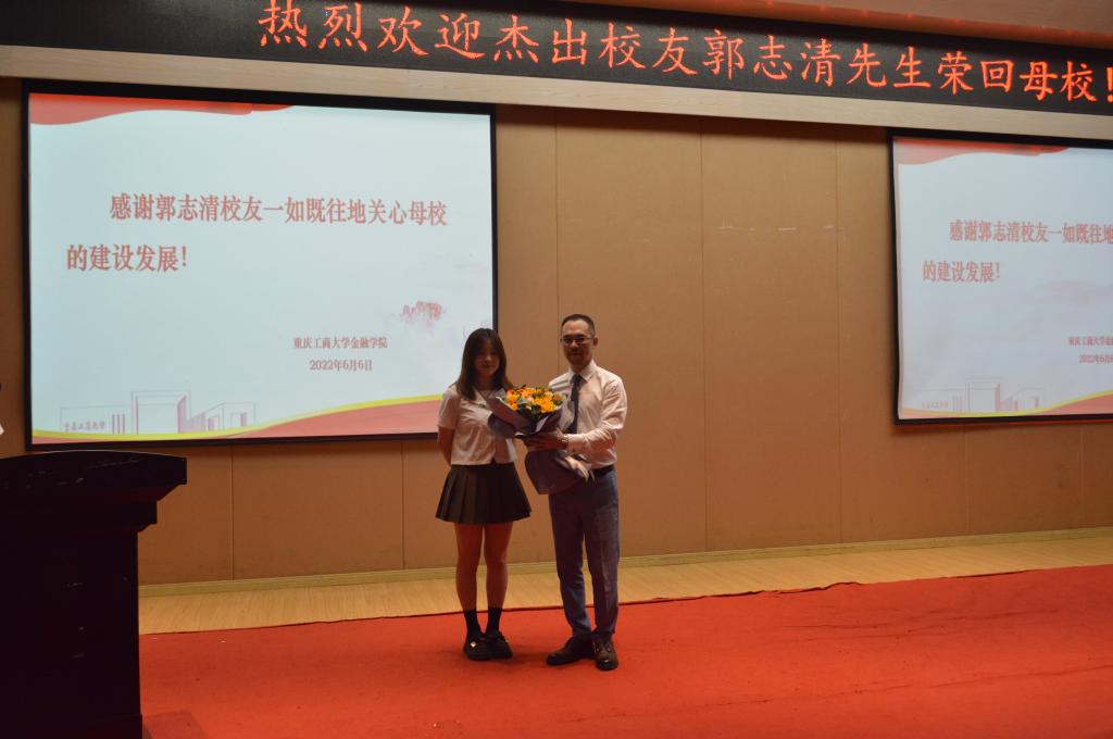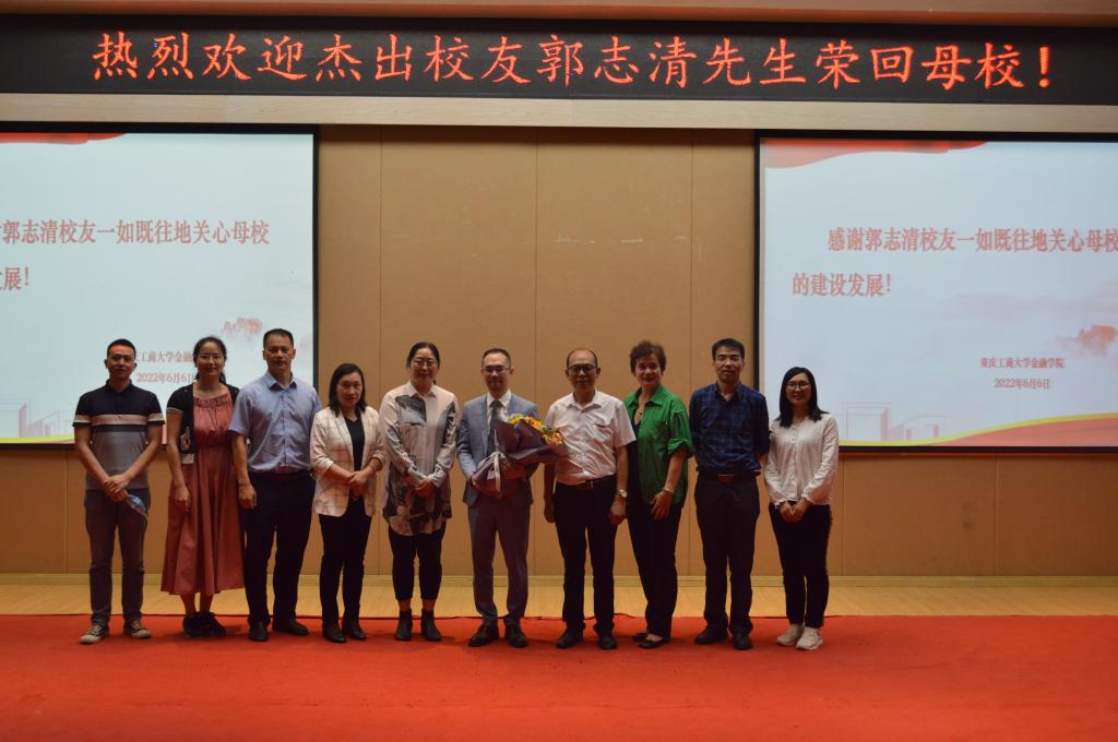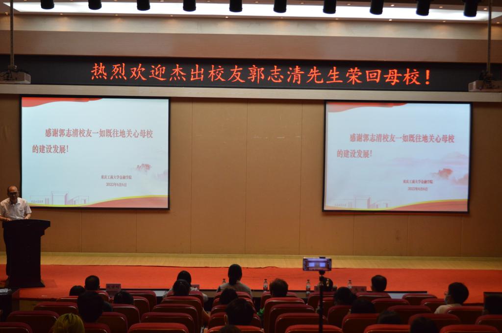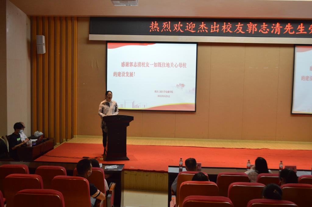 王兰致欢迎辞,对郭志清员工百忙之中参加校庆七十周年系列活动,并与学院师生分享成人、成才、成功的点点滴滴表示热烈欢迎和诚挚感谢。