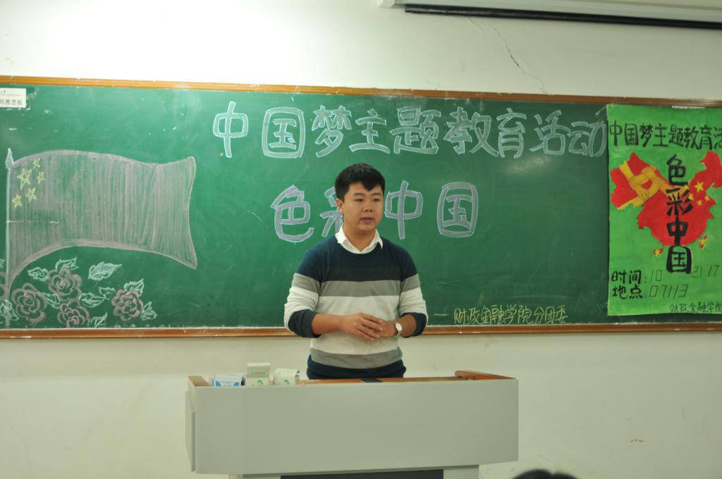,由财政伟德国际1949分团委员工会主办的“中国梦”主题教育系列活动之色彩中国在博智楼113教室召开。分团委书记兰丽娟老师、员工会干部及学院各班团出席了本次活动。