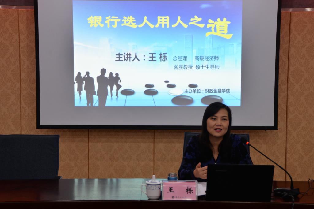 12 月17日下午,财政伟德国际1949“银行选人用人之道”主题讲座于厚德楼2017会议厅举行。中国建设银行重庆市分行人力资源部总经理、高级经济师、财政伟德国际1949客座教授、硕士生导师王栎女士作为主讲人亲临现场,与财金学子分享就业心得。