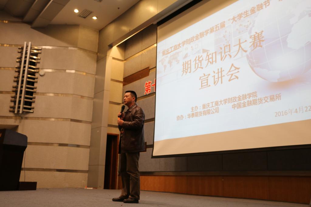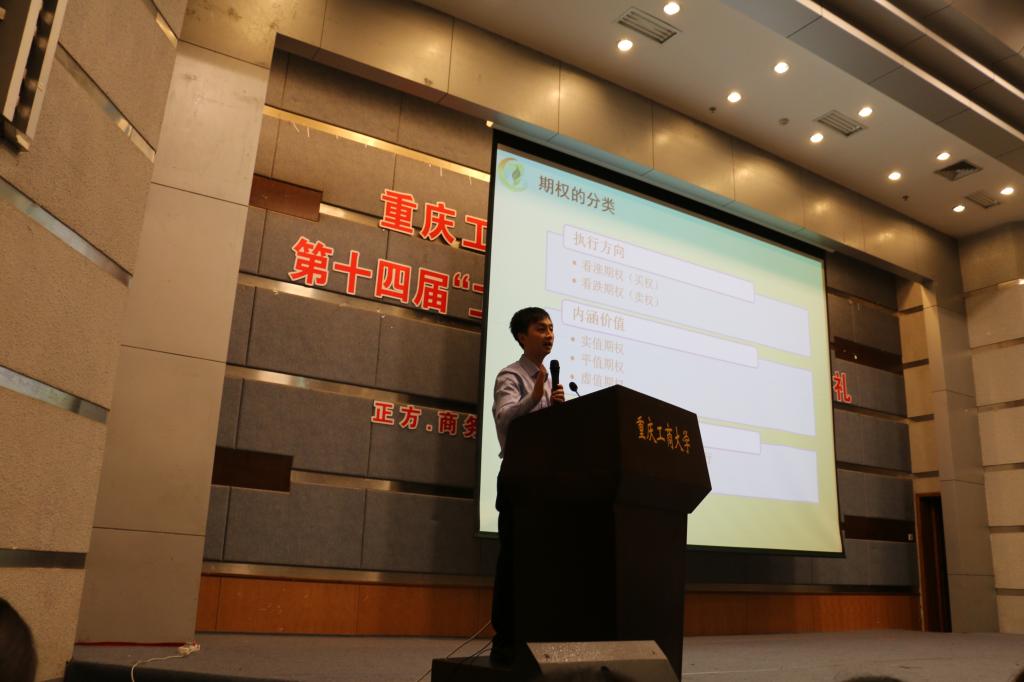 大赛秉持着培育金融行业后备人才,促进高校将知识竞赛与团队建设挂钩,普及金融衍生品知识的目标,为全国老员工提供了金融及衍生品知识交流学习的良好平台。宣讲会伊始,刘书记在致辞中表达了对相关专业公司的感谢以及对参赛选手们的殷切希望。随后,对于参赛细则问题,华泰期货代表陆彦为同学们详细解说了知识竞赛的参赛要求及方式。随后,财金学院余红霞博士对整个大赛的流程与时间做了更进一步的将对。最后,周明先生通过生动有趣的互动,系统阐释了期货知识,帮助同学们夯实基础;“阳春白雪,下里巴人”,沈发鹏先生以诙谐幽默的语言向同学们介绍了期权知识及股指期权应用。现场提问环节中,与会同学踊跃提问,大家将有关金融及衍生品知识的问题与专业人士探讨,宝贵的机会让同学们收益良多。