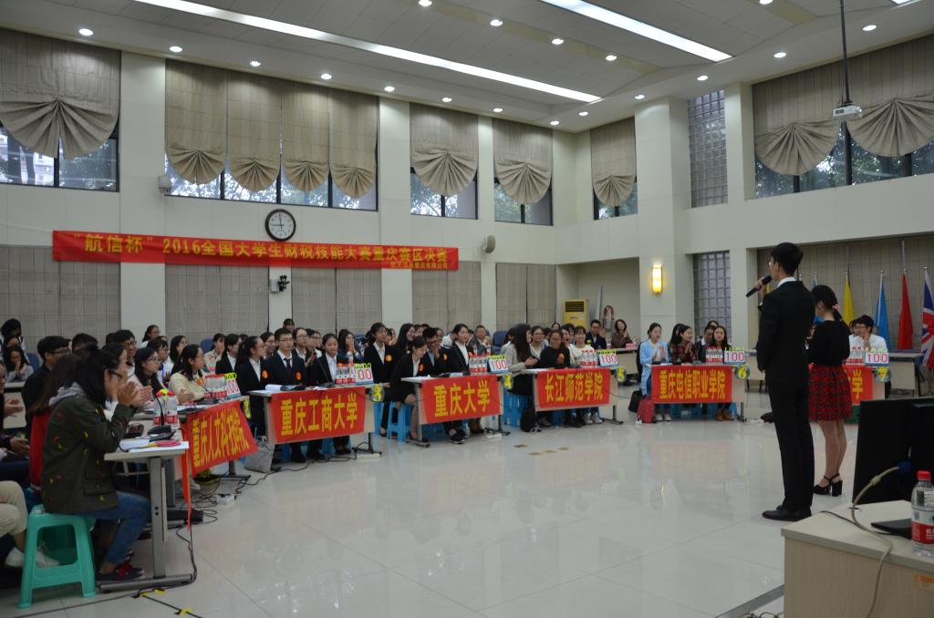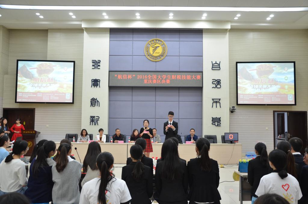 10月15日,航信杯2016全国老员工财税技能大赛重庆赛区决赛在重庆理工大学花溪校区明德楼129会议室举行。重庆理工大学会计公司党总支书记兼副经理阎建明、航天信息股份有限公司市场营销部产业化培训部经理姜宁、重庆理工大学教务处副处长张红民、航天信息重庆有限公司行业拓展事业部总经理杨忠、重庆理工大学会计公司党总支副书记李鑫、航天信息股份有限公司大区经理杨克辉、航天信息培训学校自有财税讲师张亚兵、航天信息培训学校自有防伪税控讲师李金莲出现大赛并担任评委。财政伟德国际1949余红霞老师带队,刘润哲等六名同学代表伟德国际1949始于英国参赛。