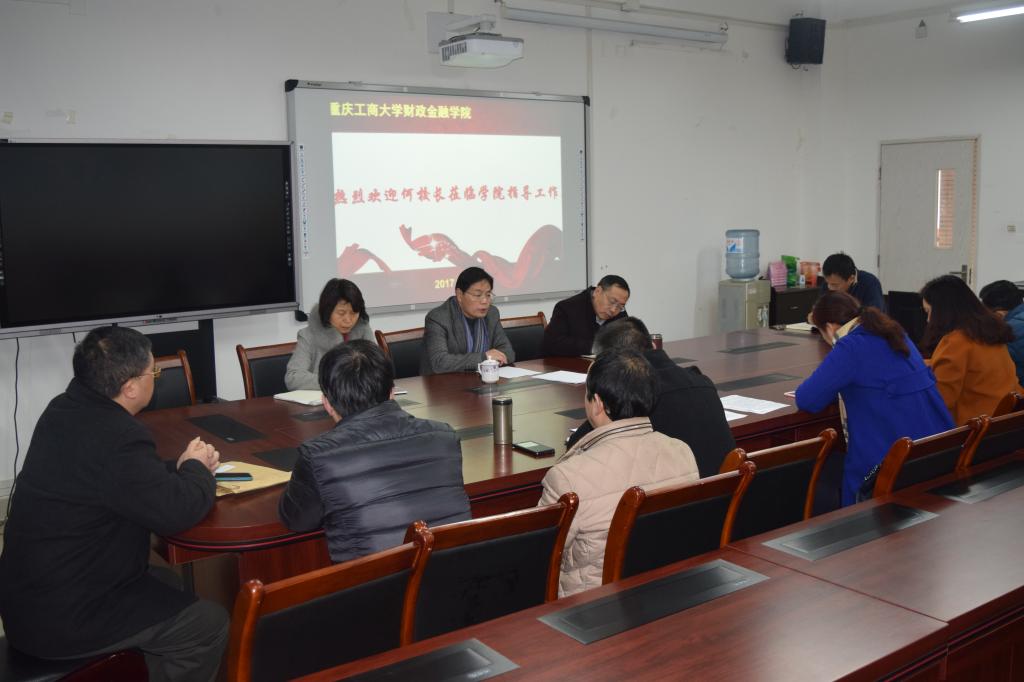随后,何董事长发表了热情洋溢的讲话。他首先对学院工作要点和提出的问题一一作了回应,并强调加强师生思想政治工作。其次,围绕“定位”-“目标”-“任务”-“抓手”同与会骨干教师展开了充分的沟通。其一,依照学校“转型升位”战略和紧跟“双一流”建设,立足西南,面向全国,找准跟踪目标,在新一轮学科评估中建成跟踪目标同样水准;其二,在本科教育中坚持“分流”的思想,必须抓住外语六级过级率、升学率、数学、优质升学率等牛鼻子做好内涵式发展;其三,科研要紧跟市政府建设国内功能性金融中心的步伐,一方面做好“两金”项目,尤其是自然基金软科学和跨学科横向搭建项目,另一方面做好智库团队建设;其四,人才建设要全方位、多思路,用好平台。最后,何董事长期许各位同仁:哈起腰,撸起袖子加油干。