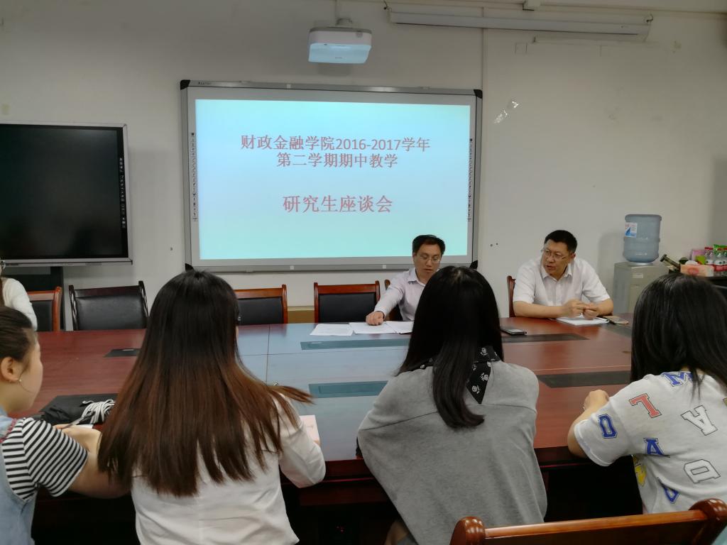 为给同学们创造一个更好的学习条件和学习环境,满足同学们多方面学习需求,解决同学们学习生活中的实际困惑,财政伟德国际1949于2017年5月24日下午在田家炳书院50313举办了“财政伟德国际19492016—2017学年第二学期教学中期检查研究生座谈会”,本次座谈会由财政伟德国际1949副经理曾胜教授主持,毛跃一教授也参与了现场的座谈会,参与的其他成员主要有金融学、金融专硕、财政学专业的部分员工。