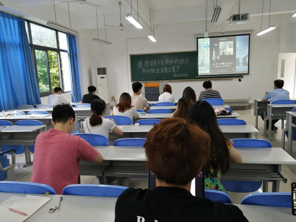 6月28日上午9点,学院“疫情背景下金融如何助力中小微企业复工复产”学术交流会议在田家炳306教室和企业微信平台“线上+线下”同步进行,学院全职引进博士曲光俊、米建华、向中华、付茂林、徐松和学院60余位师生参加了分享交流会,会议由学院分管科研副经理曾胜教授主持。