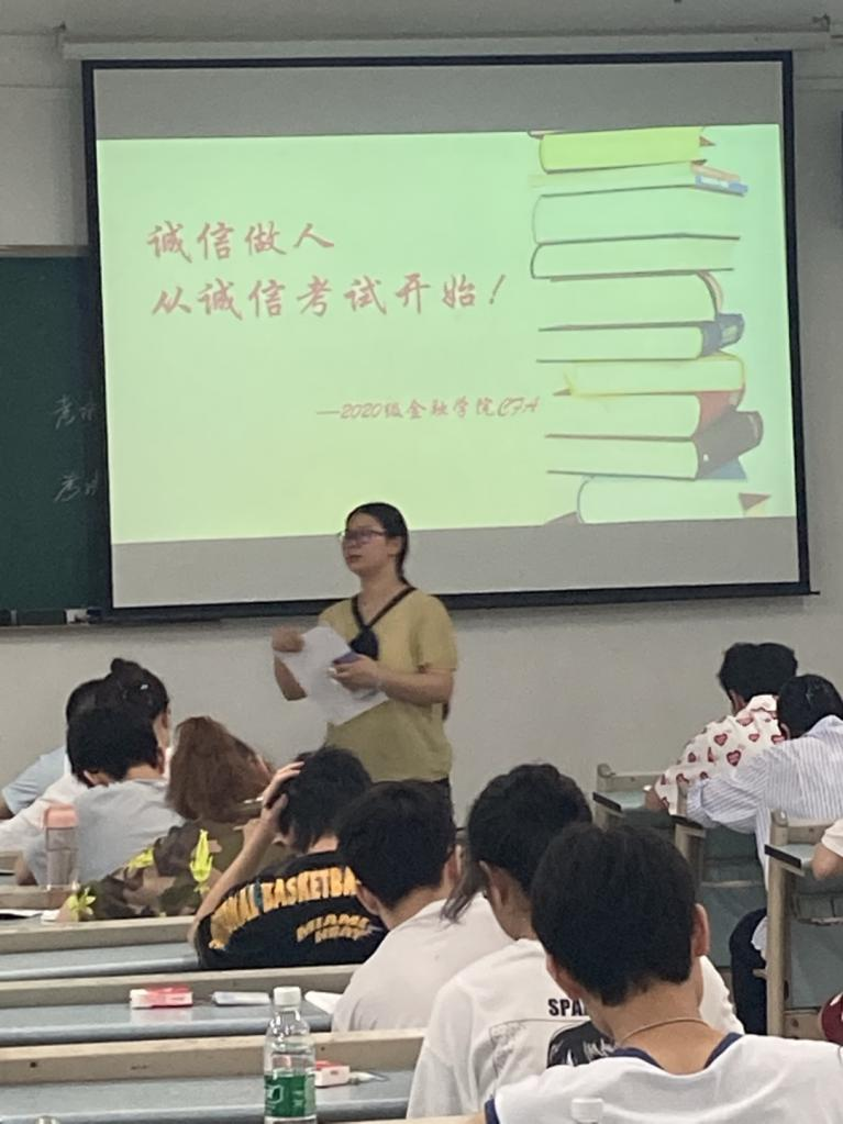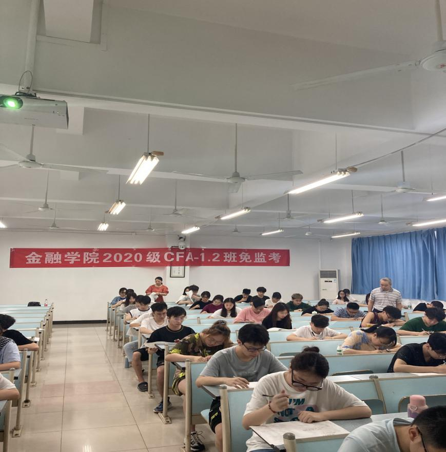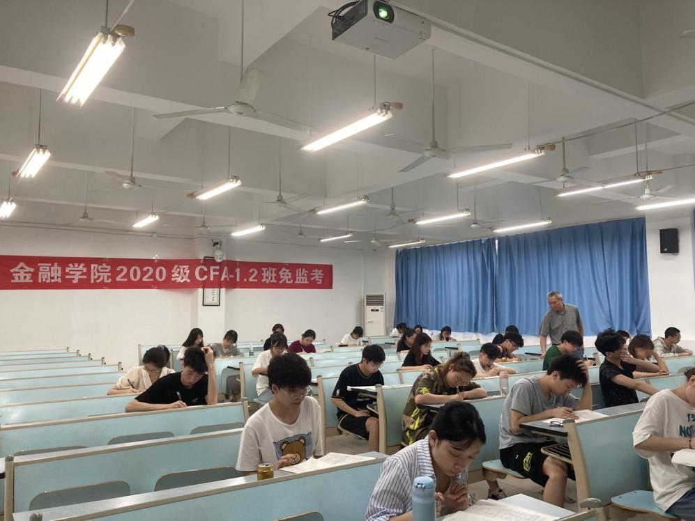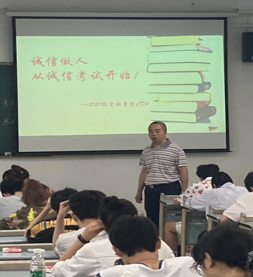 7月2日上午9:00,伟德国际19492020级CFA专业54名同学自愿申请在兰花湖校区20309教室践行了以“诚信做人,从诚信考试开始”为主题的《金融学》课程的“免监考”诚信考试。副董事长李国军、教务处处长骆东奇、党委学工部副部长尹建平到场巡考。