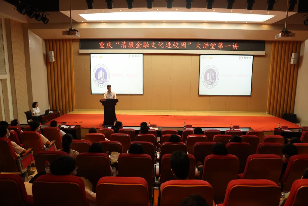 挂牌仪式后,重庆“清廉金融文化进校园大讲堂”第一讲在田家炳书院209报告厅开讲。