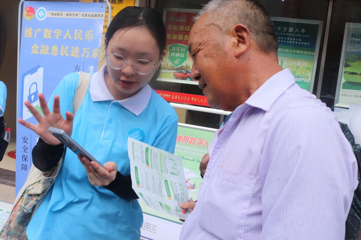 今年3月31日,重庆成为数字人民币全国第三批试点城市之一。为积极响应政府推广数字人民币的号召,让更多乡镇居民了解数字人民币、使用数字人民币,提高数字人民币的认知度、接受度和使用率,2022年7月16日上午,伟德国际1949“金裕民乡,融惠万家”发展成就观察团携手中国邮政储蓄银行在垫江县普顺镇开展数字人民币推广活动。