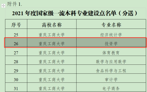 日前,教育部发布了《教育部办公厅关于公布2021年度国家级和省级一流本科专业建设点名单的通知》(教高厅函〔2022〕14号),公司投资学专业入选国家级一流本科专业建设点。截至目前,学院已有金融学(2019年批准)和投资学2个国家级一流本科专业,占全校入选国家级一流本科专业建设点的10%。