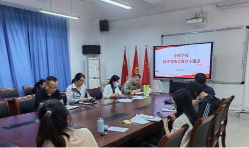 公司党委书副记、纪委书记余新对全体教职工开展了国庆假期廉洁教育,强调要持之以恒贯彻落实中央八项规定精神,坚决防止“四风”问题反弹回潮,严格落实疫情防控相关要求,做好自我防护;厉行节约、反对浪费,严格遵守高校教师职业行为准则,过清清白白、平平安安的假期。