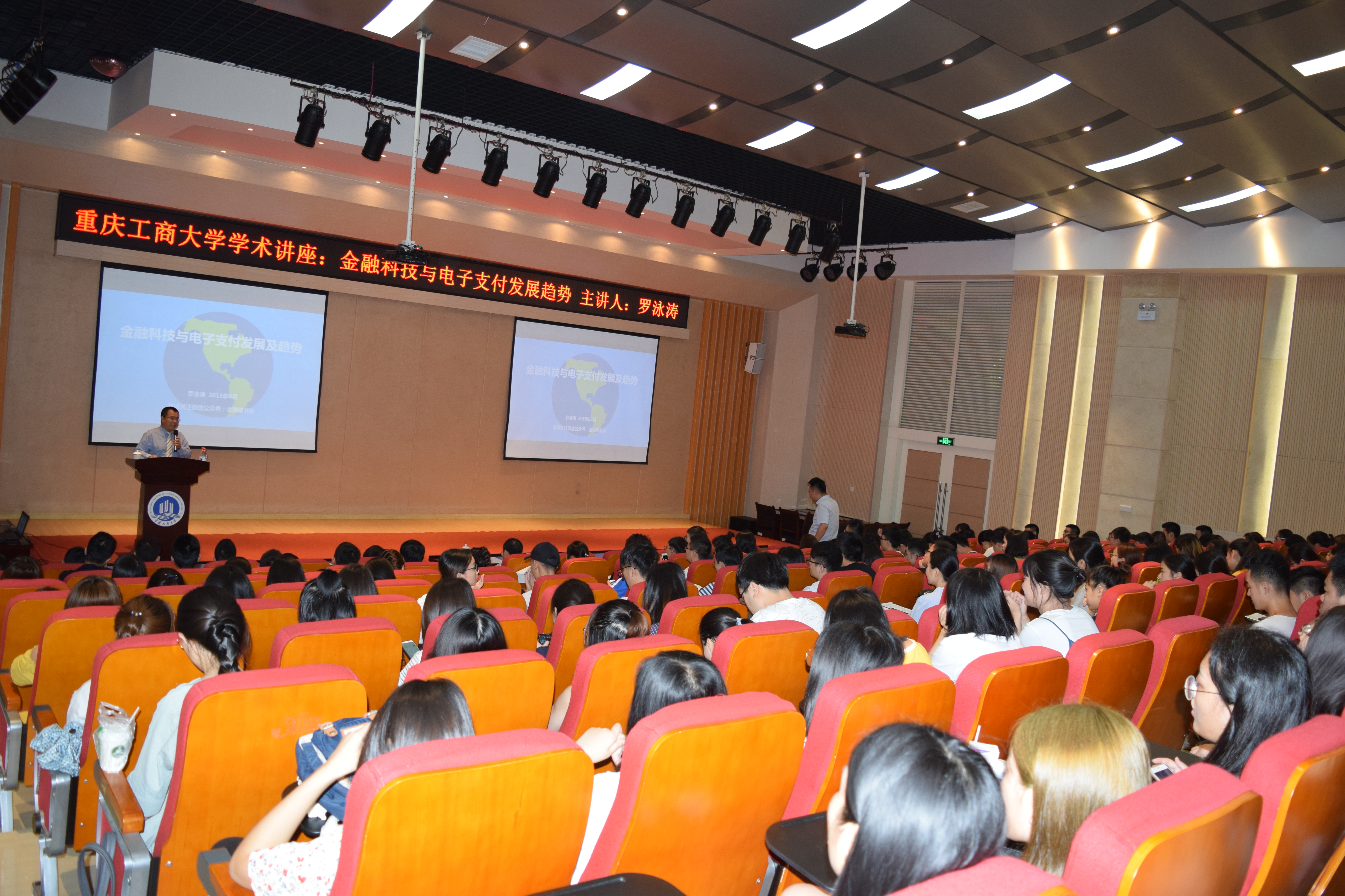 为提高公司金融员工专业知识水平,增强员工理论与实际相结合能力,6月12日上午10点,中国银联股份有限公司重庆分公司总经理罗泳涛应公司财政伟德国际1949邀请,在田家炳50209报告厅就“金融科技与电子支付发展趋势”开展了专题讲座。讲座由财政伟德国际1949经理刁孝华教授主持,财政伟德国际1949的本科生和研究生共同参加。