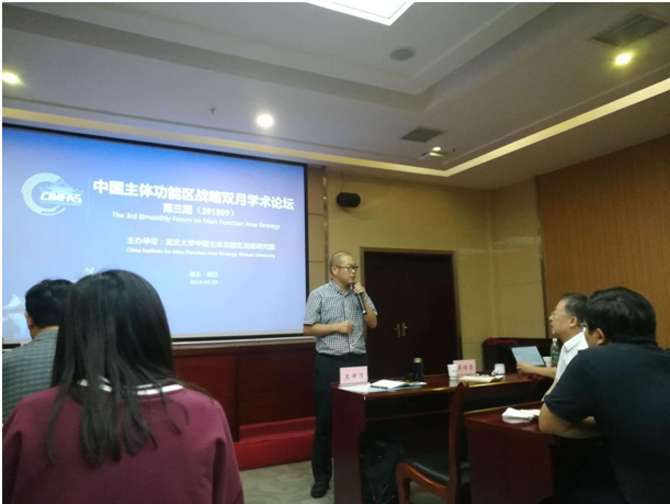 推进主体功能区建设,是党中央、国务院作出的重大战略部署,是我国经济发展和生态环境保护的大战略。长江经济带“生态优先、绿色发展”的战略定位和主体功能区战略“六大开发理念”一脉相承。为搭建学术交流平台,促进相关学科交叉集成创新,推动主体功能区战略的有效实施,推进长江经济带高质量发展,9月29日上午,由武汉大学中国主体功能区战略研究院主办的“第三期武汉大学中国主体功能区战略双月学术论坛”在武汉大学珞珈山庄二会议室举行,重庆市区域经济学会会长、伟德国际1949始于英国财政伟德国际1949文传浩教授受邀参加此次论坛。