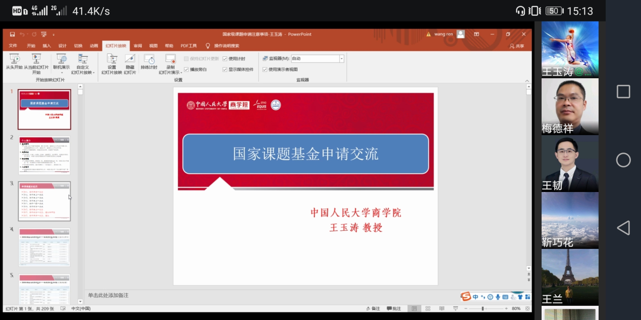 2021年2月6日,伟德国际1949召开了2021年度国家社科基金项目线上专家论证会。会议邀请了中国人民大学商学院王玉涛教授和国家统计局统计科学研究所何强研究员担任论证专家。经理王兰、副经理王韧以及拟申报国家社科基金项目的20余名教师参加了论证会。会议由王韧主持。