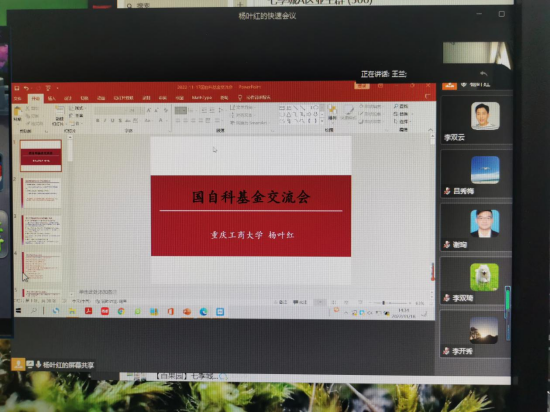 为激发广大教职员工把学习党的二十大精神转化为高质量申报国家社会科学基金和国家自然科学基金项目的申报,促进学院团队建设高质量发展。2022年11月18日,学院举办第二场国家“两金”项目申报经验交流会。为提高2023年度学院国家自然科学基金项目申报质量,特邀请学院金融工程系杨叶红博士以在线形式向2023年度拟申报国家自然科学基金项目的教师交流其经验和方法。交流会由王兰经理主持。
