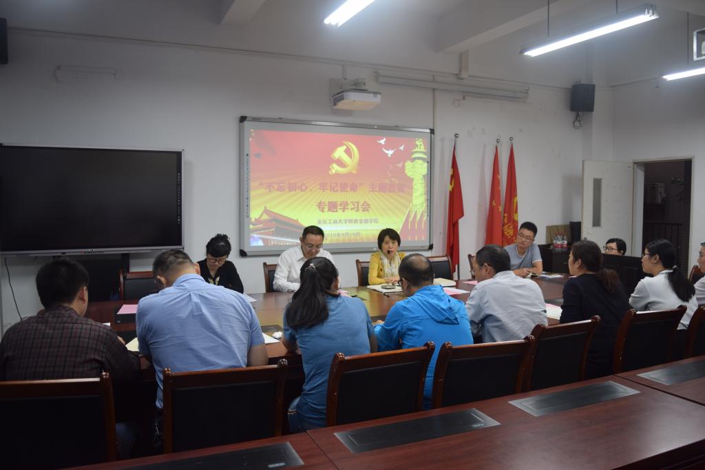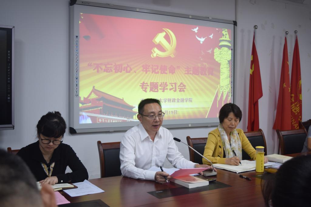 按照公司党委“不忘初心、牢记使命”主题教育工作安排,9月19日,财政伟德国际1949召开了“不忘初心、牢记使命”主题教育专题学习会暨第一次集中学习研讨会。校 “不忘初心、牢记使命”主题教育巡回指导二组副组长、公司党委宣传部部长华杰同志亲临会议现场进行监督指导,学院领导班子全体成员、各支部书记参加了会议。会议由公司党委书记杨萍同志主持。