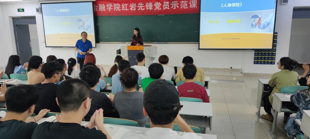 示范课由石晨曦博士讲授,授课班级为2021级保险1、2班,学院无课程安排的全体党员教师参加本次公开课。石老师本节课主要讲授了健康保险的有关知识。她结合大家刚刚共同抗击新冠疫情的背景谈到健康教育、管理的意义和价值,让同学们感受到中国共产党的伟大和走新时代中国特色社会主义道路的理论自信、道路自信、制度自信和文化自信。通过一段视频引入了“健康保险”这一概念,在大家对健康保险有了基本了解后,向大家介绍了健康保险的保险标的、理赔方式以及特点。在讲授中,石老师对同学们进行提问,同学们积极回答问题,表达自己的想法,通过提问的方式,让同学们明确了对健康保险所承保的“疾病”的定义。在讲述健康保险合同的过程中,石老师以板书形式清晰明了地区分了“保险期限”、“责任期限”、“等待期”三个不同的概念。最后,石老师将健康保险与人寿保险、健康保险与意外伤害保险进行对比,帮助同学们更好地区分不同险种。