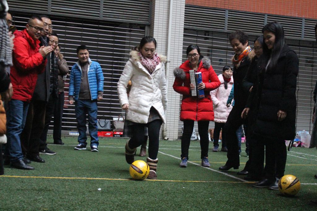 本次运动会共设置了两个项目,单人跳绳与定点足球射门。在单人跳绳环节,5组代表队共派出五位老师进行一分钟跳绳,看似简单的跳绳项目却也难倒了不少老师,大家集中精力,认真比拼,在紧张而激烈的气氛中,办公室代表队取得了胜利。在定点足球射门项目中,各代表队派出5名教师,每名教师有三个定点射门的机会,为了射门成功,每个队员都在找窍门、找角度, 或快步直踢,或慢速定点踢,最后财税代表队、金工保险代表队、投资代表队并列第一名。经过两个项目的比拼,最终将成绩加总,办公室代表队获得一等奖,财税代表队、金工保险代表队和投资代表队获得二等奖,金融代表队获得三等奖。