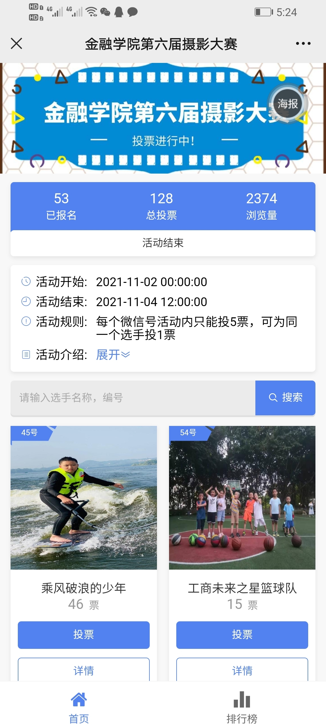 本次大赛以“运动美”为主题,要求老师们多到运动场上或者健身房里去发现运动的魅力。活动通知发出后,会员们积极参与,在10月20日-11月2日期间提交了摄影作品,我们能从每幅作品中体会到运动的魅力和美感。有的摄影作品记录了老师自己在健身房里健身的影像,有的捕捉了运动场上运动员奔跑、拼抢的过程,有的定格在投篮的瞬间,还有作品关注了孩子们的运动……。收齐照片后,做好照片的链接,供老师们逐一欣赏,同时投票选出自己喜欢的照片。投票结束后,统计每幅作品的得票数,最后评选出一等奖8名,二等奖11名,三等奖16名。
