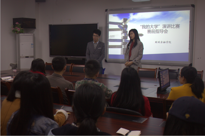 经过学院推荐、学校初赛,成功晋级决赛的13级投资班王艺超和13级财政班赵思源同学分别进行了演讲,分享了他们在考研、出国路上的奋斗历程,或温情或激昂,在场的老师和同学深受感染和触动。曾获得教职工演讲比赛一等奖的范乐乐老师针对他们的现场表现,从仪表仪容、演讲流畅性、语音语速、突发状况等方面做了细致的指导,希望他们再多加练习、继续完善。黄谦副书记充分肯定了两位同学从学院初赛以来的进步,并预祝他们在学校决赛中取得好成绩。