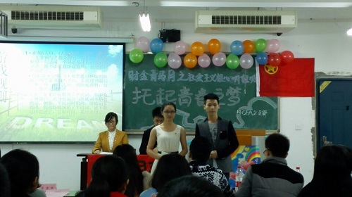 2014年11月18日下午,公司14级CFA2班在南岸校区博智楼516教室隆重开展“财金青马之社会主义核心价值观之托起青春之梦”的团日活动。公司财政伟德国际1949分团委书记兰丽娟老师,财政伟德国际1949员工会主席董文韬,财政伟德国际1949员工会副主席甄婷雪、鲁星、聂露含,财金学院分团委副书记胥裴然担任此次活动的评委嘉宾。另外,值得一提的是,CFA团支部邀请了两位外国嘉宾参加此次团日活动。
