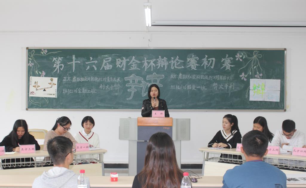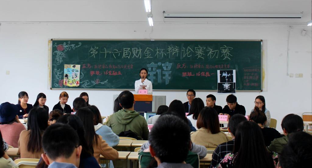 财政伟德国际1949第十六届“财金杯”辩论赛初赛于2017年10月13日下午博智楼07502、07504、07505举行。16金融一、16金融二、16金融三等16支队伍参加此次比赛,16支队伍共分八组,三组一个辩题,两两对决,竞争晋级名额。