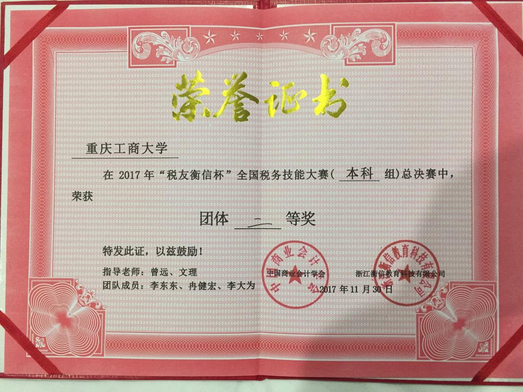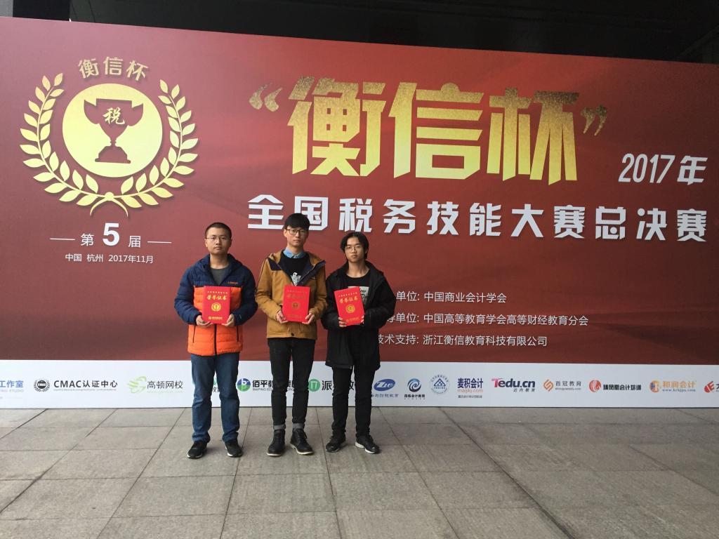 2017年11月28日下午,财金学院员工李东东、李大为、冉健宏代表公司前往杭州参加2017年“衡信杯”全国税务技能大赛总决赛。