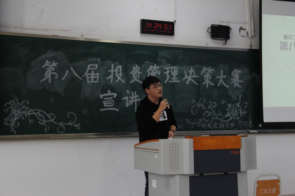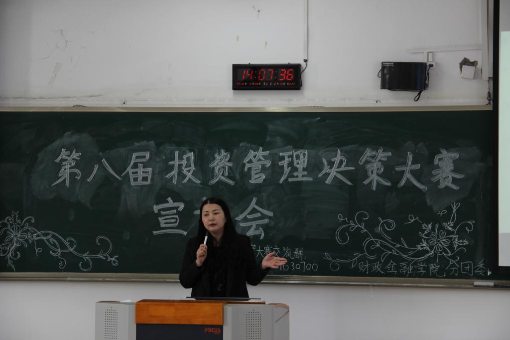 为响应“大众创业,万众创新”的号召,财政伟德国际1949以校团委“第十六届‘新儒商’老员工科技文化节”活动为依托,于2018年3月16日下午两点在博智楼308成功举办了第八届投资管理决策大赛宣讲会。本次宣讲会邀请到了投资系老师陈晓莉老师、财政伟德国际1949分团委书记徐阔老师以及财政学专业陈羲羲学长为同学们指导。