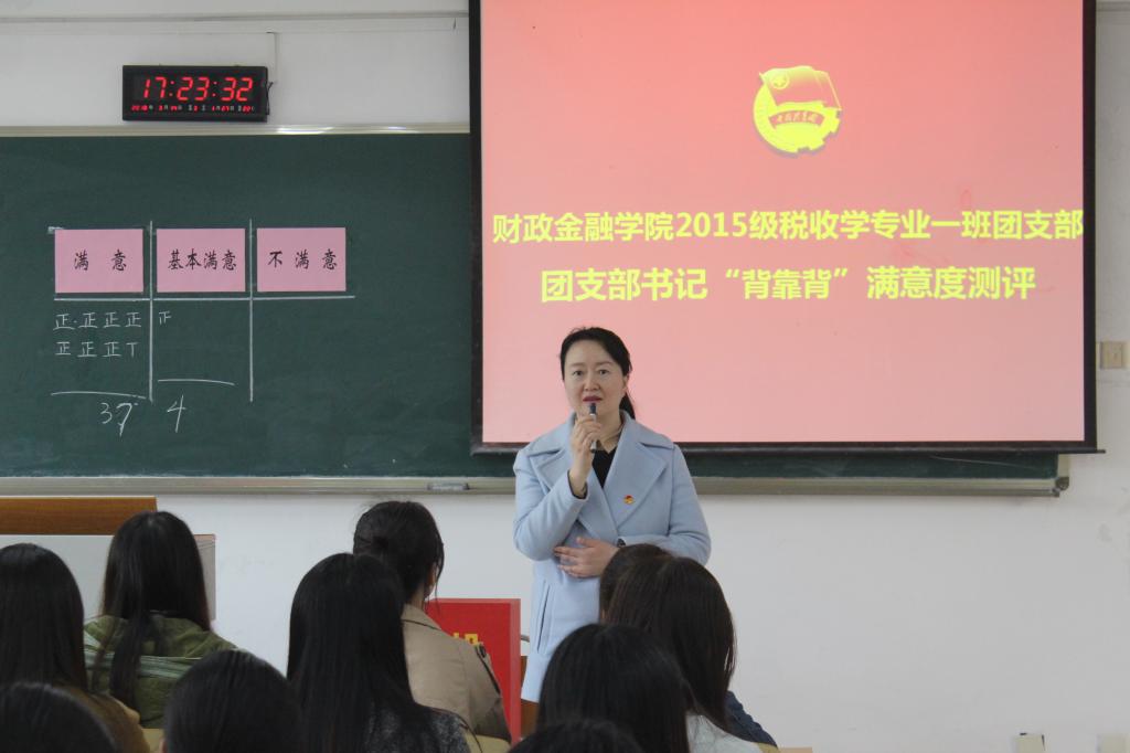 为夯实基层团支部群众基础,做好团支部建设工作,3月14日下午,伟德国际1949始于英国财政伟德国际1949税收学专业2015级一班团支部在70202教室开展了对团支书刘菊同学的“背靠背”满意度现场集中测评。团市委高校工作部副部长、调研员李霞、校团委杨娟副书记、校团委陈琛老师到场观摩了此次测评。