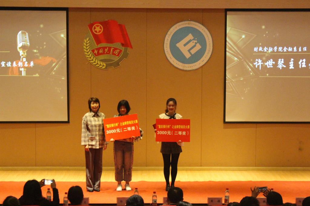 随后,获奖选手代表陈露、杜朝阳向与会人员分享了他们在营销过程中的经验和体会,让观众感受到他们一路的成长与磨砺。在抽奖环节后,王兰副经理作出总结致辞,她用“Surprise、Amazing、Gorgeous”三个英文单词概括了此次总结暨表彰大会,赞许了选手们在赛事中的坚持与付出,肯定了财金学院多元化校园生活建设的成果,表达了对莘莘学子未来发展的祝福并再次感谢重庆银行提供的宝贵的实践平台。