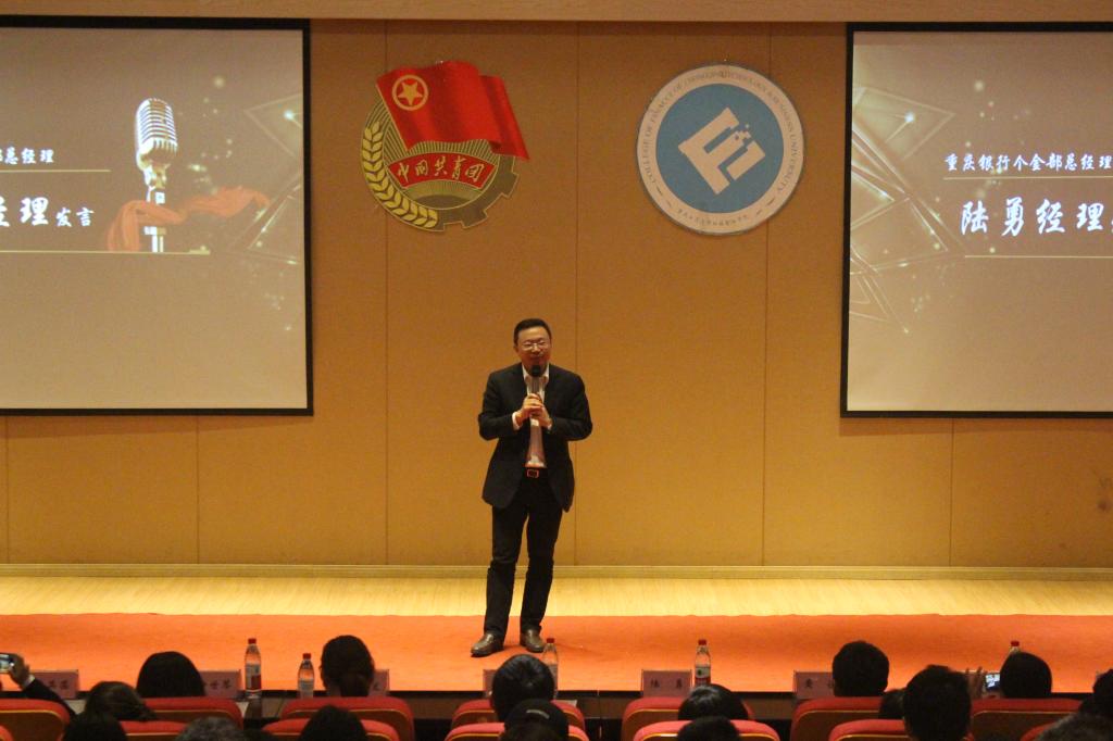 2018年4月25日晚,财政伟德国际1949第二届“重庆银行杯”金牌营销员大赛总结暨表彰大会在田家炳209报告厅隆重举行。重庆银行个金部总经理陆勇,重庆银行个金部周璇、左其菡;财政委书记杨萍、党委副书记黄谦、副经理王兰,金融系主任许世琴、讲师杨佳妮以及分团委书记徐阔作为嘉宾莅临了此次大会,与入围决赛的47位选手和现场观众一起回顾历时三个月的漫漫营销路。