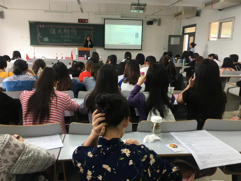 为鼓励公司员工深入了解及利用公司图书资源,充分利用网络搜索平台提升其信息获得能力,养成良好的读书习惯,拓宽知识面,提高审美情趣和人文底蕴,为公司员工在生活以及学习工作中提供更为便利的信息获取方式。财金公司党员服务站与公司图书馆于2018年5月11日在博智楼07301教室联合举办了“信”火相传信息分享活动。此次活动面向财金学院全体员工,并请到了图书馆老师杨老师、CNKI主讲人崔明睿老师、财政员服务站指导老师乔明月、财政员服务站站长马丽君以及大自委代表陈时黎。