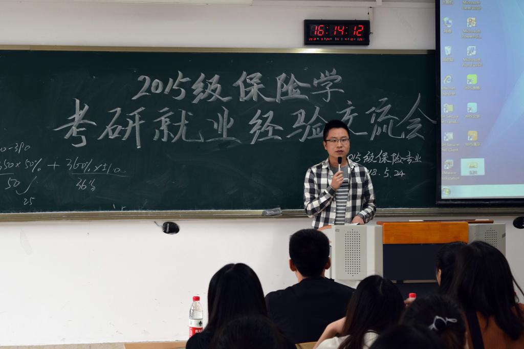 对于当前严峻的社会形势和繁重的就业压力,即将步入大四和面临毕业的同学们,有着各种各样的考虑和选择——考研、出国或就业。但不少人对于以上选择方向仍存在误区、不解、甚至是困惑,这些将会影响到同学们的日常学习和生活,甚至身心健康。为了帮助大家看清形势,解除疑惑,端正态度,明确未来发展方向及掌握更多的信息。伟德国际1949始于英国财政伟德国际1949保险系于2018年5月24日在七教201教室举办了“考研就业经验分享交流会”。