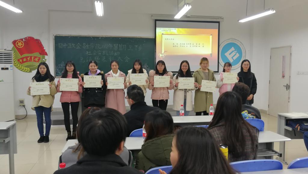2018年12月14日下午四时,财政伟德国际19492018年暑期“三下乡”社会实践活动总结暨表彰大会在田家炳书院306教室顺利举行。此次活动旨在总结2018年财金学院暑期社会实践的工作,表彰先进,树立典型。财政伟德国际1949分团委书记徐阔老师及各实践分队成员、员工代表共计80余人参加了本次活动。
