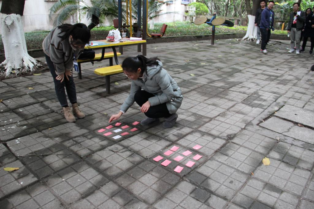 活动开始前,两个学院将队伍进行重组,分别两两结合形成共十六支队伍开展拓展训练。本次活动以集体打卡、闯关、做游戏的形式,旨在培养员工的团队精神以及增强团队合作能力并进一步增进两院之间的深厚友谊。活动涉及的打卡点扩大至整个校园,团队成员需要通过提示卡片找到打卡点并全体一起拍照,找到打卡点后再根据相对应的信息去完成“你比我猜”、“默契度测试”、“勇往直前”等小游戏。活动期间,各团队成员激情参与,在不同的活动项目中,队员们密切配合,齐心合力,闯过一个又一个难关。比赛的过程也充满了欢声笑语,每个人都乐在其中,加油呐喊声更是不绝于耳,处处可以感受到团队合作的力量。
