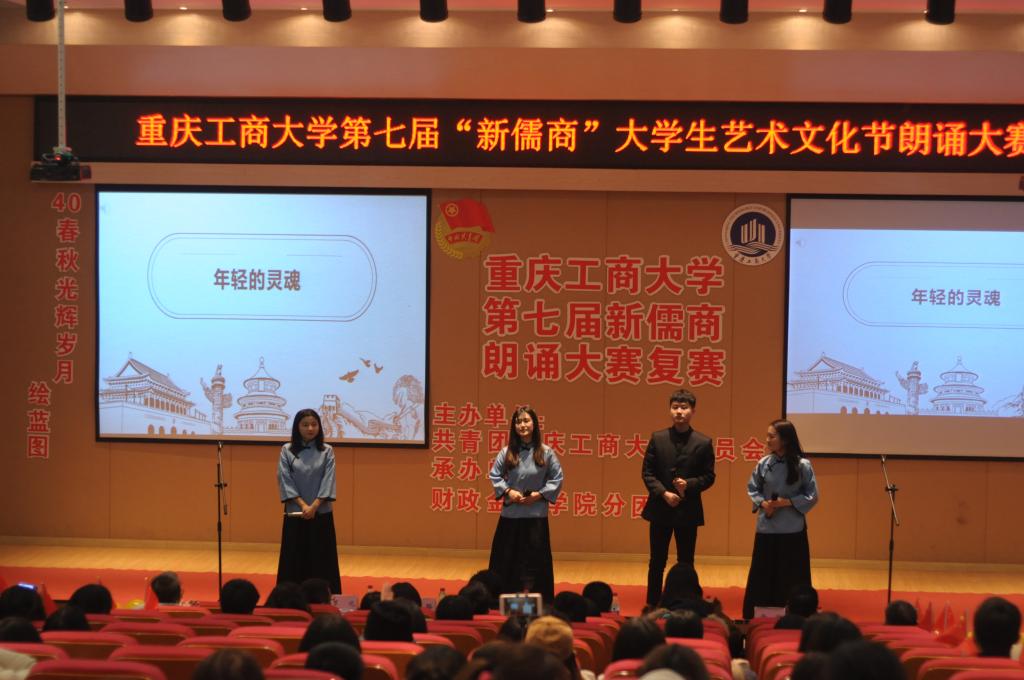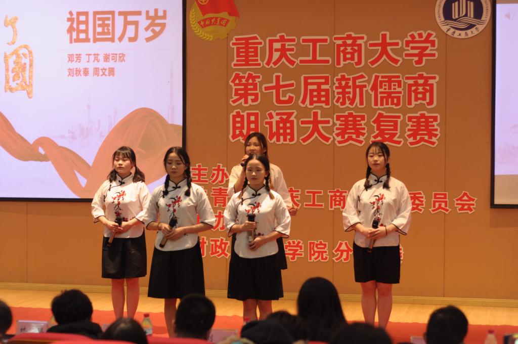 本次比赛参赛选手以团队朗诵的形式进行表演。比赛以来自通识学院的《祖国,以梦为马》拉开了帷幕。选手们激情盈溢,语言流畅,朗诵风格也各不相同。来自各学院的29支队伍的倾力表演让台下观众产生了强烈的情感共鸣,也赢得了大家的赞叹与掌声。最终,商务策划学院的《请铭记,雾重庆》、经济学院的《给小平同志的100首诗》、管理学院的《我的南方和北方》、财政伟德国际1949的《船长礼赞》等12个节目脱颖而出,成功晋级决赛。