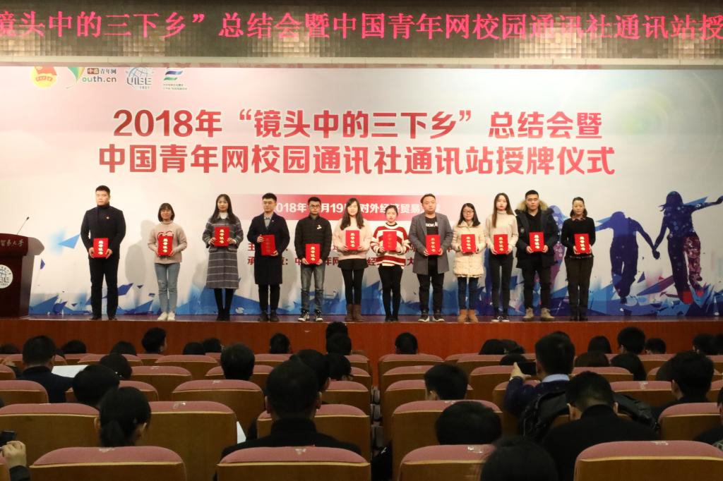 2018年12月19日,由团中央青年发展部、团中央网络影视中心主办,中国青年网、对外经济贸易大学团委承办的2018年“镜头中的三下乡”总结会暨中国青年网校园通讯社通讯站授牌仪式在对外经济贸易大学举行。公司三下乡团队队长林哲苏赶赴北京参与本次会议。本次会议有300余所高校参加,其中包括清华大学、中央财经大学、华中师范大学、武汉科技大学等其他高校。在本次由团中央举办的2018年“镜头中的三下乡”活动评选中,公司荣获全国百强传播力团队表彰。