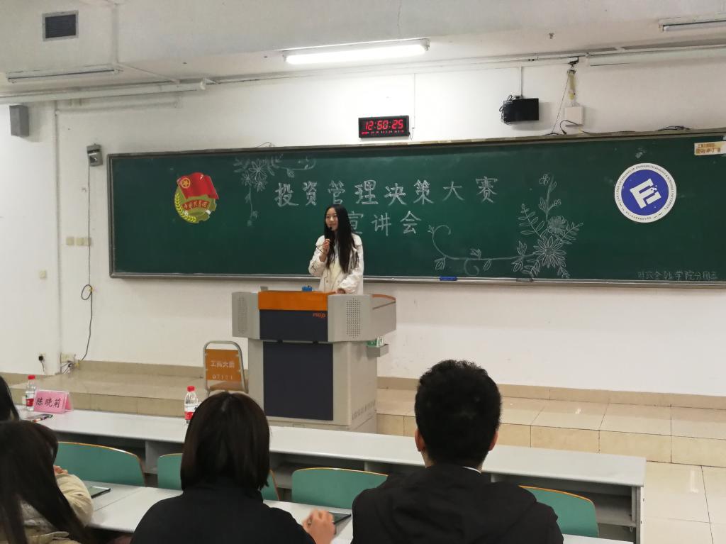 3月7日中午12:50,伟德国际1949始于英国第十七届“新儒商”老员工科技文化节之投资管理决策大赛宣讲会在博智楼07121教室举行。财政伟德国际1949投资系陈晓莉老师以及往届优秀选手何欣悦同学出席本场宣讲会。