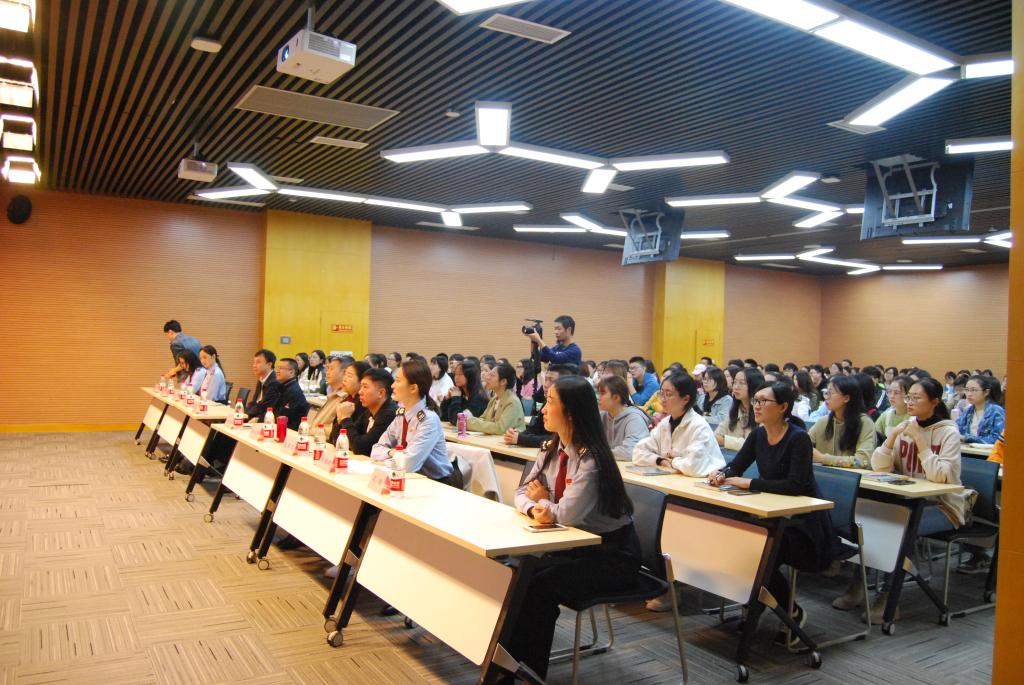 宣讲会开始后,韩健老师上台致辞。他引用孟子的话“徒善不足以为政,徒法不能以自行”,教导我们不仅要学习税法知识,更重要的是要培养税法思维,让税法思维融入到生活和工作中。随后重庆税收普法宣讲团成员、涪陵区税务局马晓敏老师和重庆税收普法宣讲团成员、重庆市第七稽查局何冰翊老师分别向同学们介绍了关于发票的“套路”和税务稽查的“前世今生”。何冰翊老师称: 纳税道路千万条,诚信纳税第一条;涉税行为不规范,亲人朋友两行泪。劝解同学们要诚信纳税。劳动模范、巴渝工匠、国家高级刺绣师、重庆税收志愿者单大琼老师为我们分享了她自己与税收有关的创业故事。我们的学姐、伟德国际1949始于英国优秀毕业生、南岸区税务局的宋雅洁也来到现场,与我们分享她在税务系统工作的感受。宣讲会在程羿老师致辞中落下帷幕。