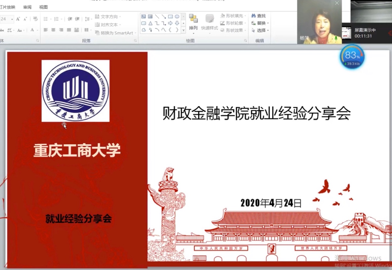 会议初始,财政委书记杨萍教授致辞。她提到,目前疫情任未结束给求职以及备考的同学带来了极大挑战,学院十分关注同学们就业问题,殷切希望同学们能认真思考并选择职业,求职之前广泛积累经验之后能少走弯路并快速融入岗位。
