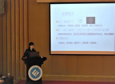 会议伊始,庞楷副经理致词,他强调了学科竞赛对老员工成长成才的重要作用,要求同学们要以自身专业为基础进行选题,形成团队力量来参加竞赛。接着,蒋老师从挑战杯简介、工商荣誉、选题、作品的撰写、注意事项五个方面对同学们进行赛前培训,她强调了选题的重要性、作品的精简性与格式的规范性,要求同学们要充分利用好数字资源。随后在坐的各位老师针对同学们现场提出的问题进行答疑。最后,余新副书记进行了总结,并对同学们提出了殷切的希望,并预祝同学们能在大赛中再创佳绩,为学院争光。