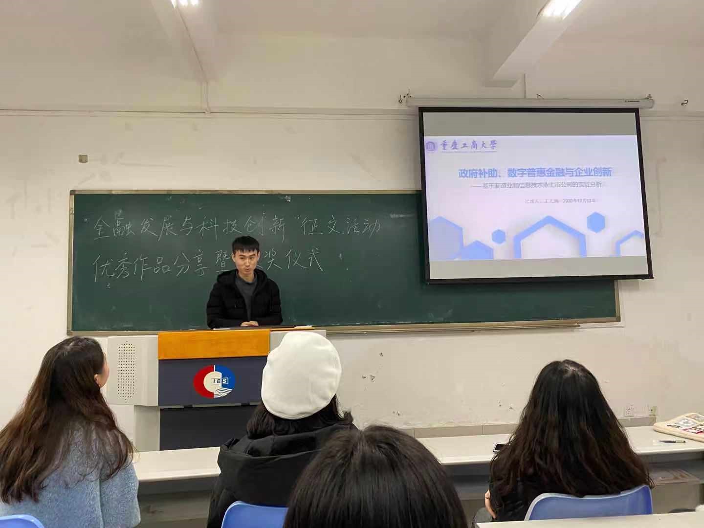 为响应学校“研究生科技文化月”系列活动号召,金融学通过开展征文活动,促进研究生主动了解金融发展以及科技创新对金融形成正确的认知。伟德国际1949研分会在2020年12月13日下午3:00于田家炳308教室举办了“金融发展与科技创新”征文活动颁奖仪式。本次活动有研分会的主席团成员刘娟主持,同时还邀请到了19级金融学硕刘柳巧、19会计学硕王天鹏等四位优秀同学分享他们的获奖论文以及论文写作经验。