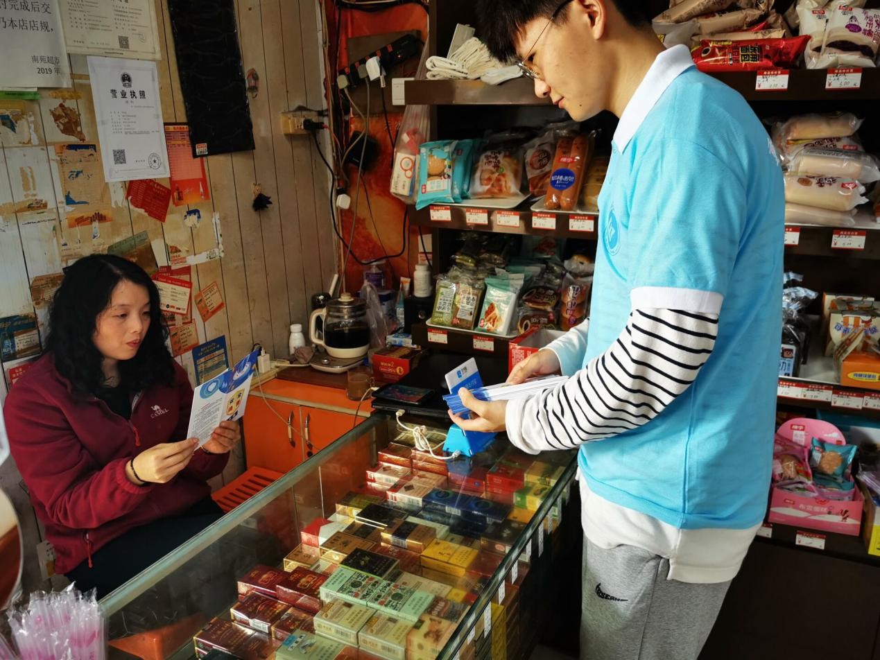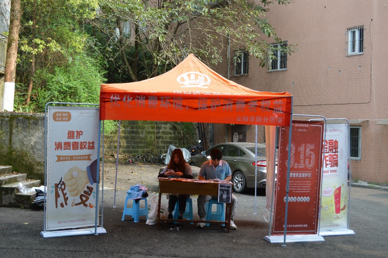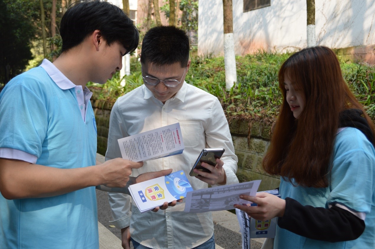 团干部在北10公寓前设置宣传点,一边发放针对老员工消费者权益保护的宣传册,一边对手册的内容进讲解,内容涵盖老员工消费陷阱及案例、防范金融诈骗的途径等;其次是开展线上的问卷调查以及数据整理,了解同学们平时的消费习惯和消费困惑,并普及消费者权益维护相关法律法规;最后向校园商家推广宣传315国际消费者权益保护日,倡导诚信经营,维护消费者权益。
