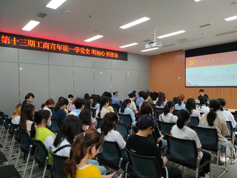 为扎实推进党史学习教育,厚植爱党爱国情怀,5月14日下午14点,由校团委主办、伟德国际1949分团委员工会承办的第十三期“工商青年说”在图书馆第二会议室准时召开。