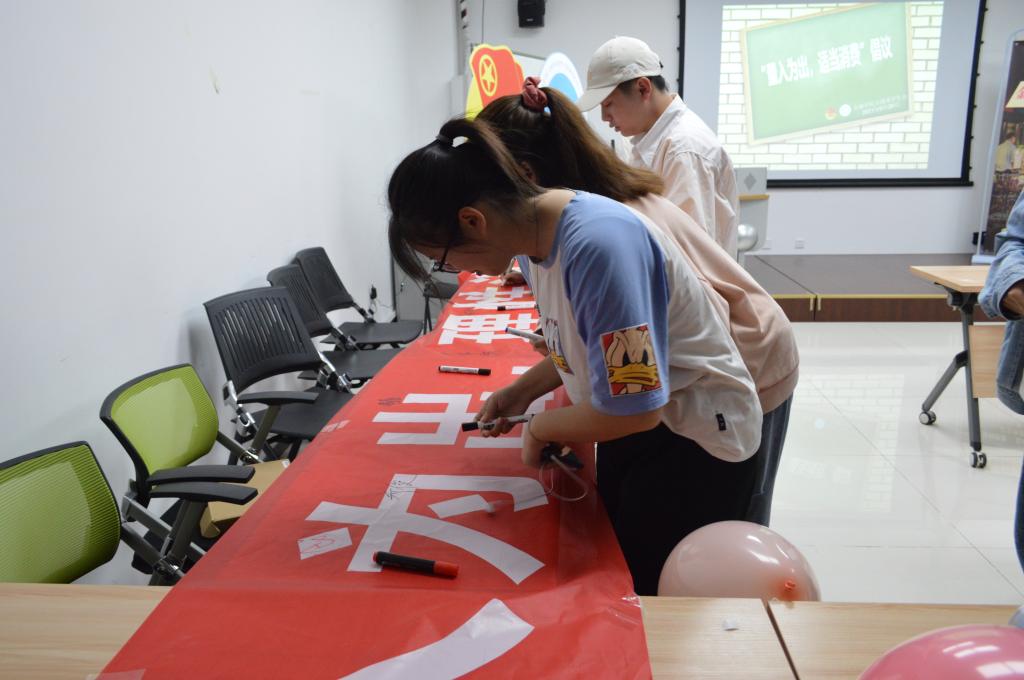 演出期间,主持人通过知识问答、分发问卷的方式向同学们传播消费知识。演出结束后,同学们分享身边发生的案例,提到了二手买卖脱离平台交易被骗、淘宝退款链接被骗、微信QQ被盗要求转钱被骗等。最后,伟德国际1949分团委(员工)副书记田凯玉对活动进行了总结,再次普及金融防诈骗知识,同时倡导同学们量入为出,理性消费。活动结束后,同学们在横幅上签字响应正确消费的号召。