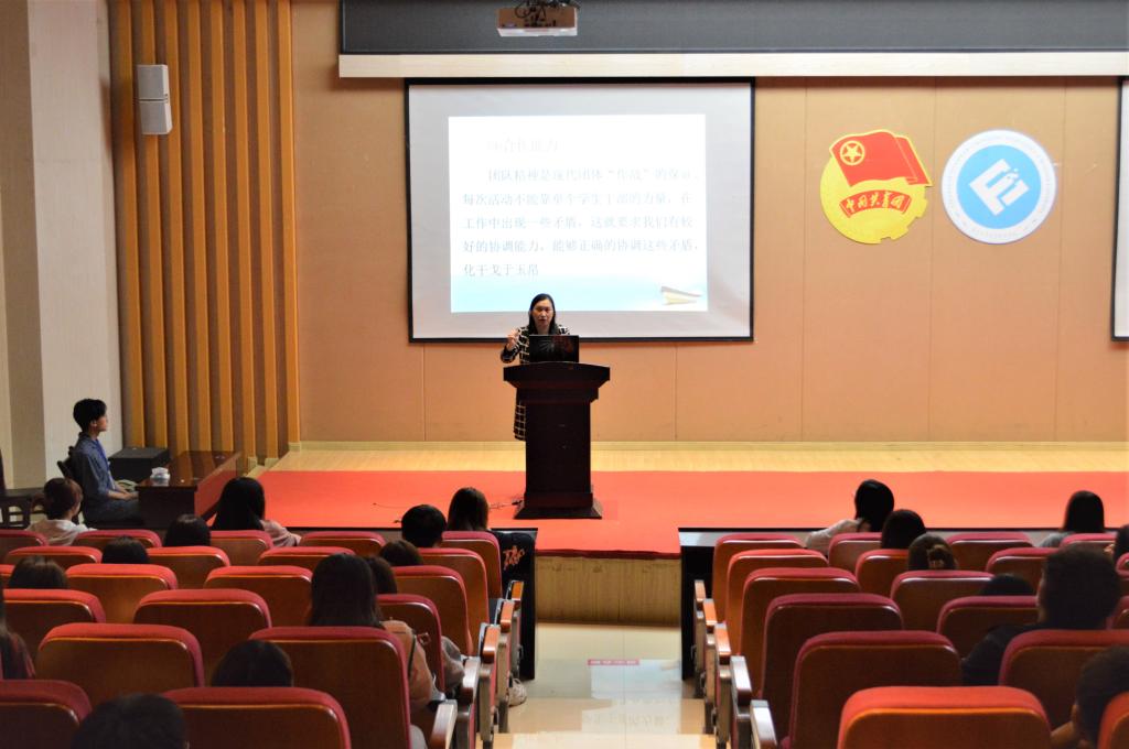 余新副书记首先以员工干部应具备的四项素质即政治素质、知识素质、能力素质、心理素质展开讲解,分析员工干部应具有的八大能力,同时结合习近平总书记对青年的寄语向同学们进行详细解读。她强调,作为员工干部,应该是从同学中来到同学中去,更应具备“五有:有信念、有纪律、有品行、有服务、有作为”;“五性:预见性、计划性、时效性、主动性、积极性、创造性”;“五高:高标准、高要求、高质量、高效率、高速度”;“五心:信心、真心、虚心、耐心、细心”,由点到面,由外至内,有条有理,真正做到使同学们学有所获。未来属于青年,希望寄予青年。余书记鼓励同学们,要做到“心中有阳光,脚下有力量”,为理想而坚持不懈,才能创造无愧于时代的人生。