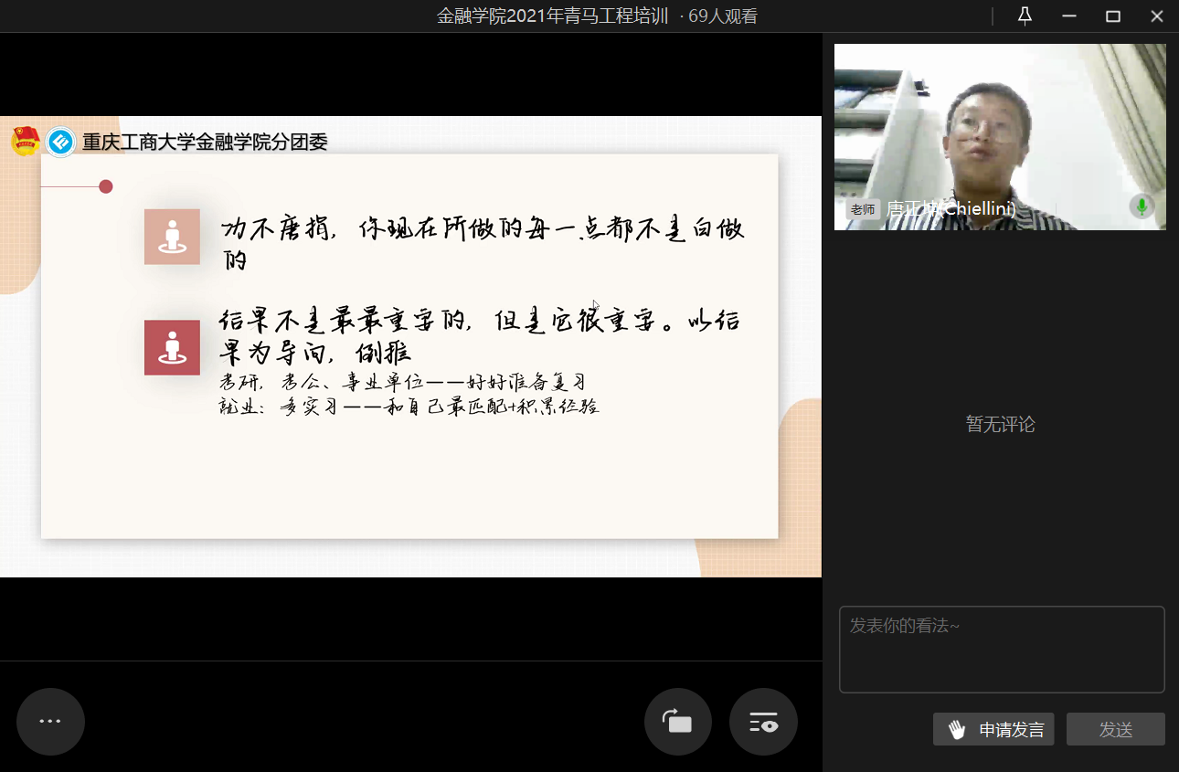 为进一步提高团干部的实践能力和组织协调能力,2021年10月20日21时,伟德国际1949第二期青马工程培训之“汲取宝贵经验,赓续前行力量”于企业微信线上直播顺利举行。