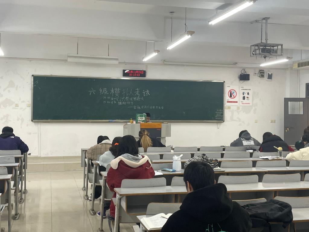 为提高同学们参与英语四六级考试的热情,提前适应考试氛围和试卷题型,11月28日15:00,伟德国际1949于博智楼306、307教室开展英语四六级模拟考试,共计123名同学参与模拟考。
