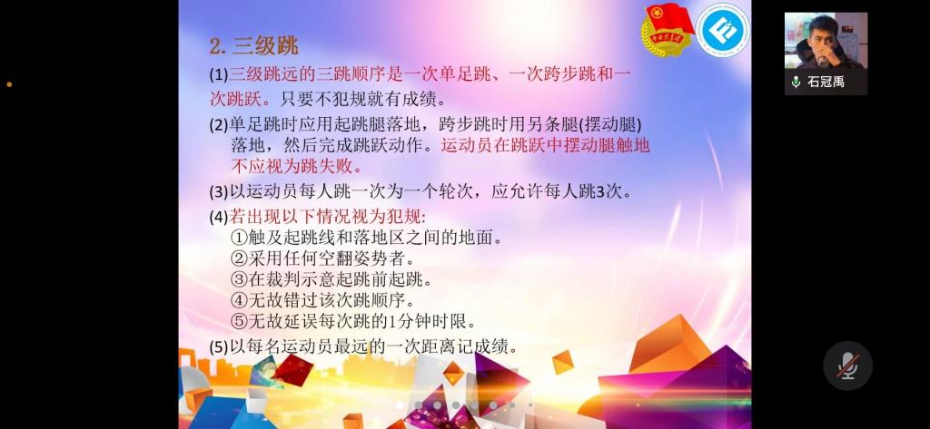 2022年3月18日19时,伟德国际1949体育技能培训大会在企业微信顺利举行。本次会议由伟德国际1949分团委员工会体育部部门负责人熊芯、石冠禹、李蕊楠分别对田径运动径赛、田赛、全能比赛进行介绍,旨在提高同学们的体育知识与技能。