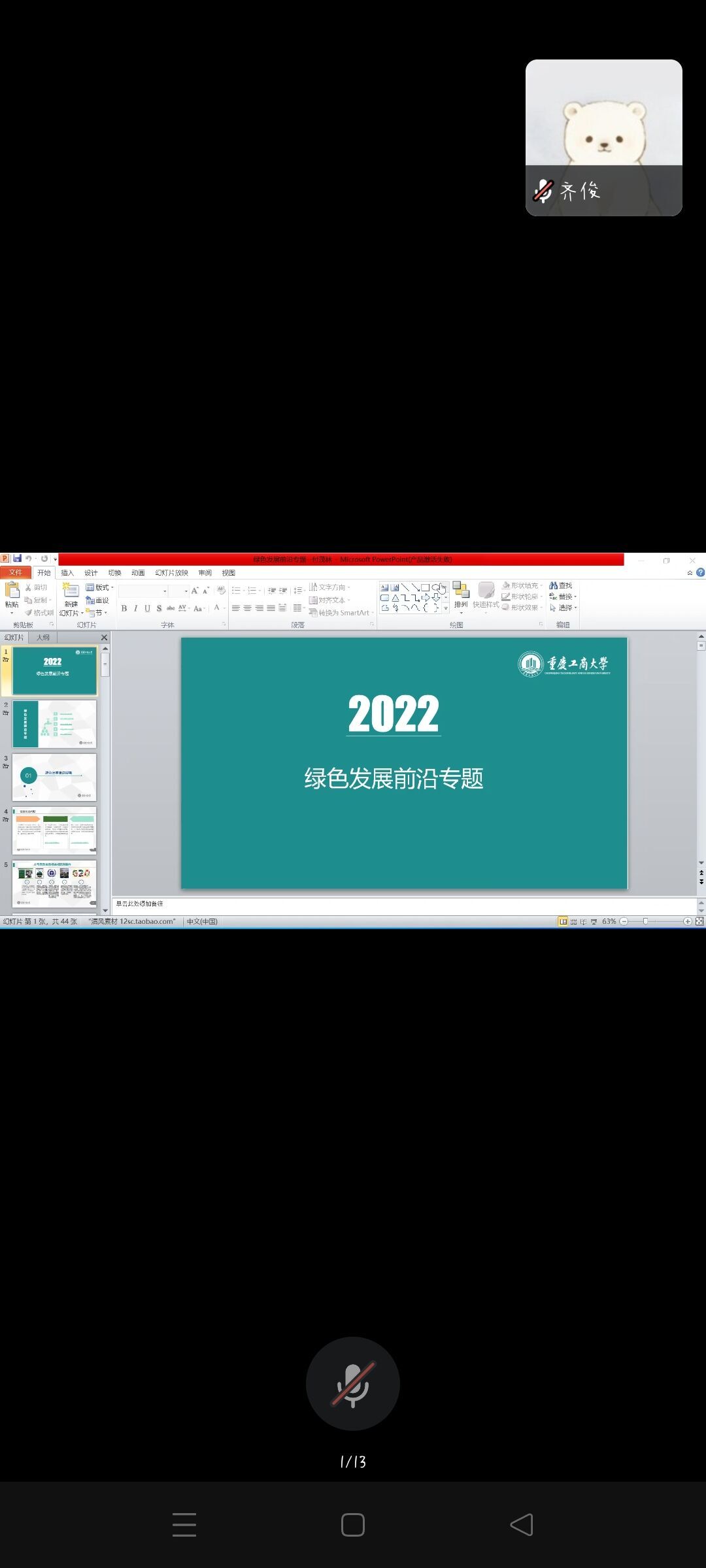 会议伊始,付老师向同学们介绍了如今的资源环境问题、人与自然的关系,通过介绍绿色发展的内涵与要素、绿色发展的理论基础,让同学们对“绿色发展”一词有了更加清晰的了解。随后,付老师向同学们重点讲述了绿色发展的中国思想,包括绿色发展与“十三五”规划、习近平总书记的绿色发展理念以及当代中国的绿色发展。最后,付老师讲述了绿色发展研究前沿,其中包括绿色金融与可持续发展、碳达峰碳中和、人口变迁与绿色发展等重要内容,带领同学们对“绿色发展前沿”这一主题进行系统的了解。