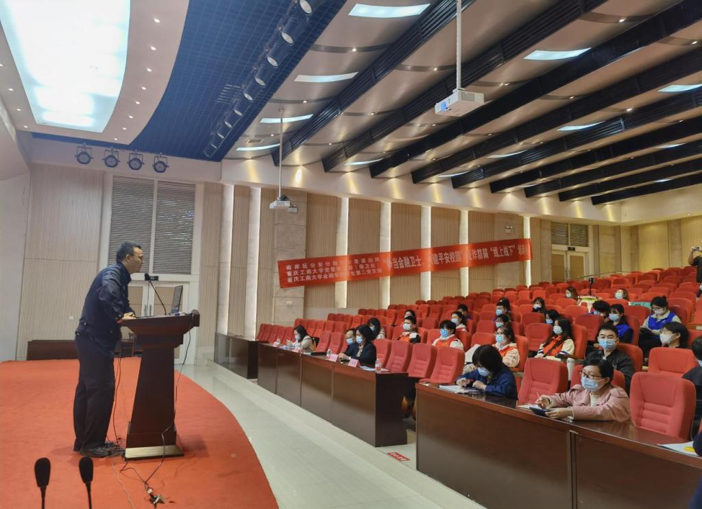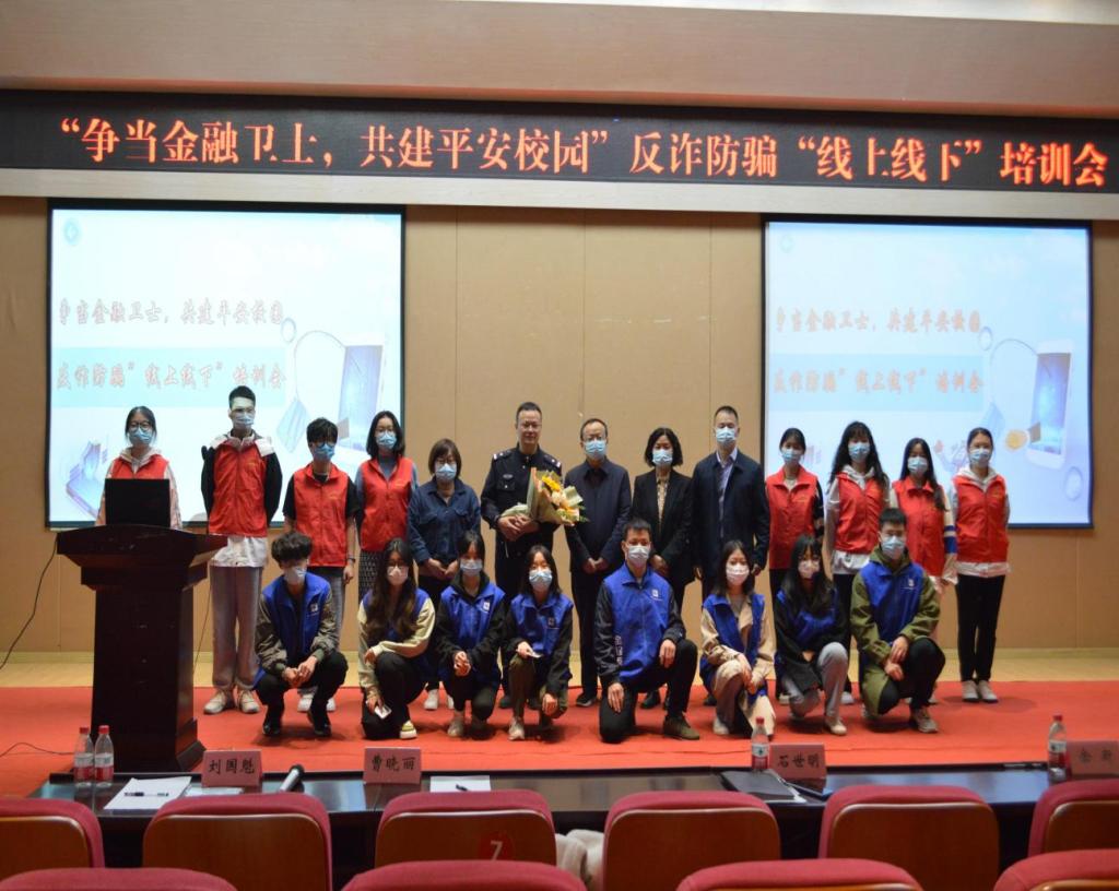 2022年10月28日,为普及防范诈骗知识,进一步提升员工的反诈防骗能力,南岸区公安分局四公里派出所、伟德国际1949始于英国党委保卫部(保卫处)以及伟德国际1949在田家炳209报告厅联合举行“争当金融卫士,共建平安校园”反诈防骗“线上线下”培训会。重庆市南岸分局四公里派出所警官刘国魁,公司党委保卫部副部长(保卫处副处长)曹晓丽,委书记、副经理石世明,委副书记、纪委书记余新,委委员、专职组织员赵甫刚及全体辅导员老师出席了培训会。“金融卫士”团队及员工第二党支部(双创)代表参加了现场培训,其他同学同步线上观看直播。