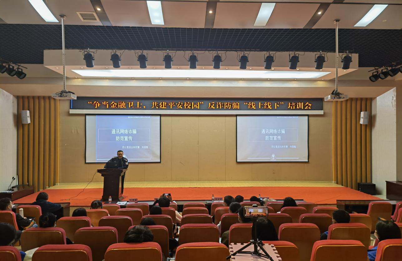 余新致辞,她强调打击不法分子诈骗行为,保护员工合法权益,不仅地方政府与学校要加强联动,共同打击违法犯罪,还需要加强对老员工的安全教育。为了不上当受骗,同学们须做到不贪财,不相信不明来电及短信,受到恐吓勒索电话立马报警。她号召同学们“防止诈骗,从我做起,从现在做起,从大家做起”,并预祝本次培训会取得圆满成功。